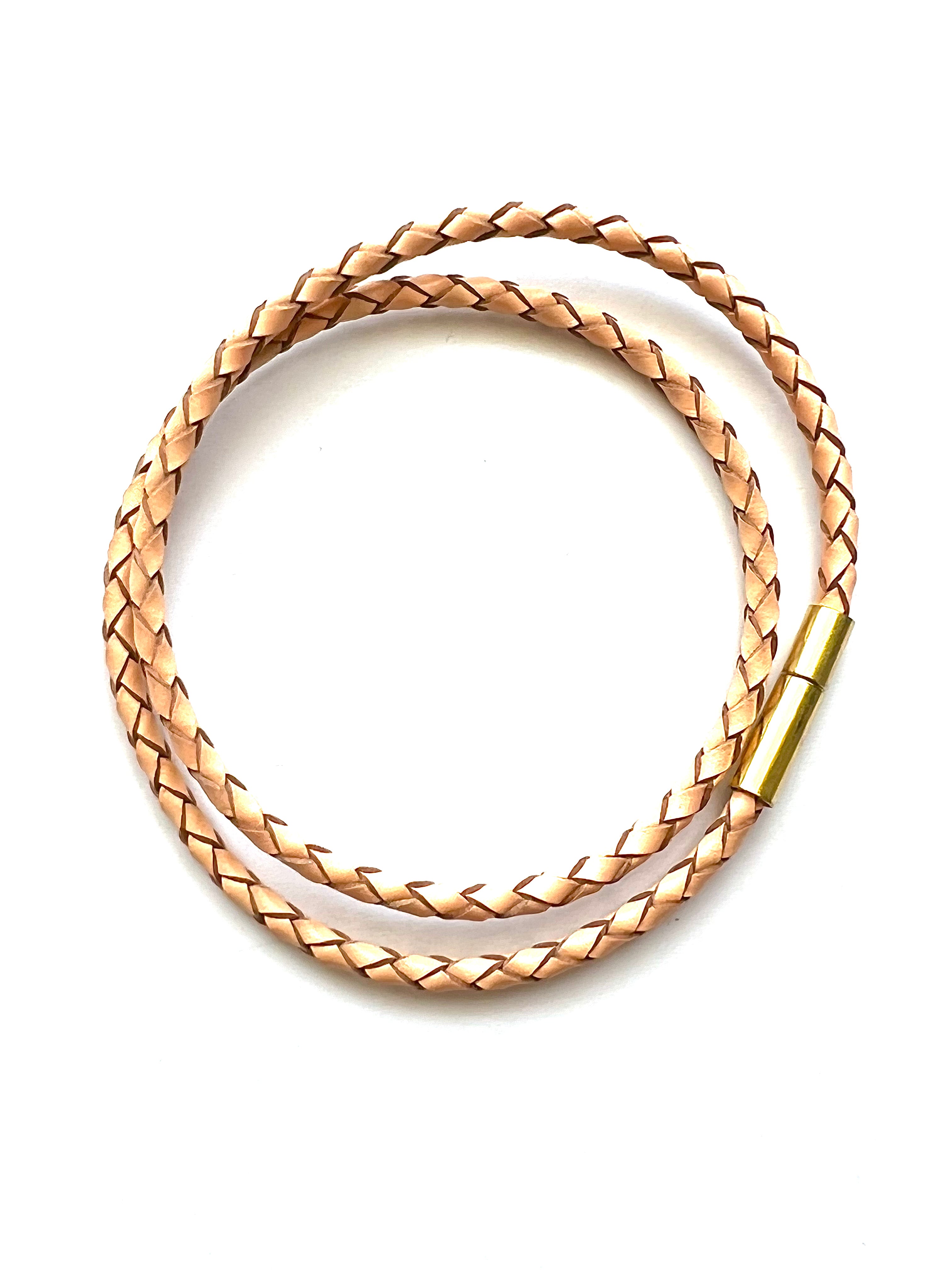 Crafted as a double leather wrap with an 18k gold vermeil push clasp finished with protective E coating, this piece is made to last and designed for real life. Available in classic gold and soft peach, it blends seamlessly with your existing jewelry collection.