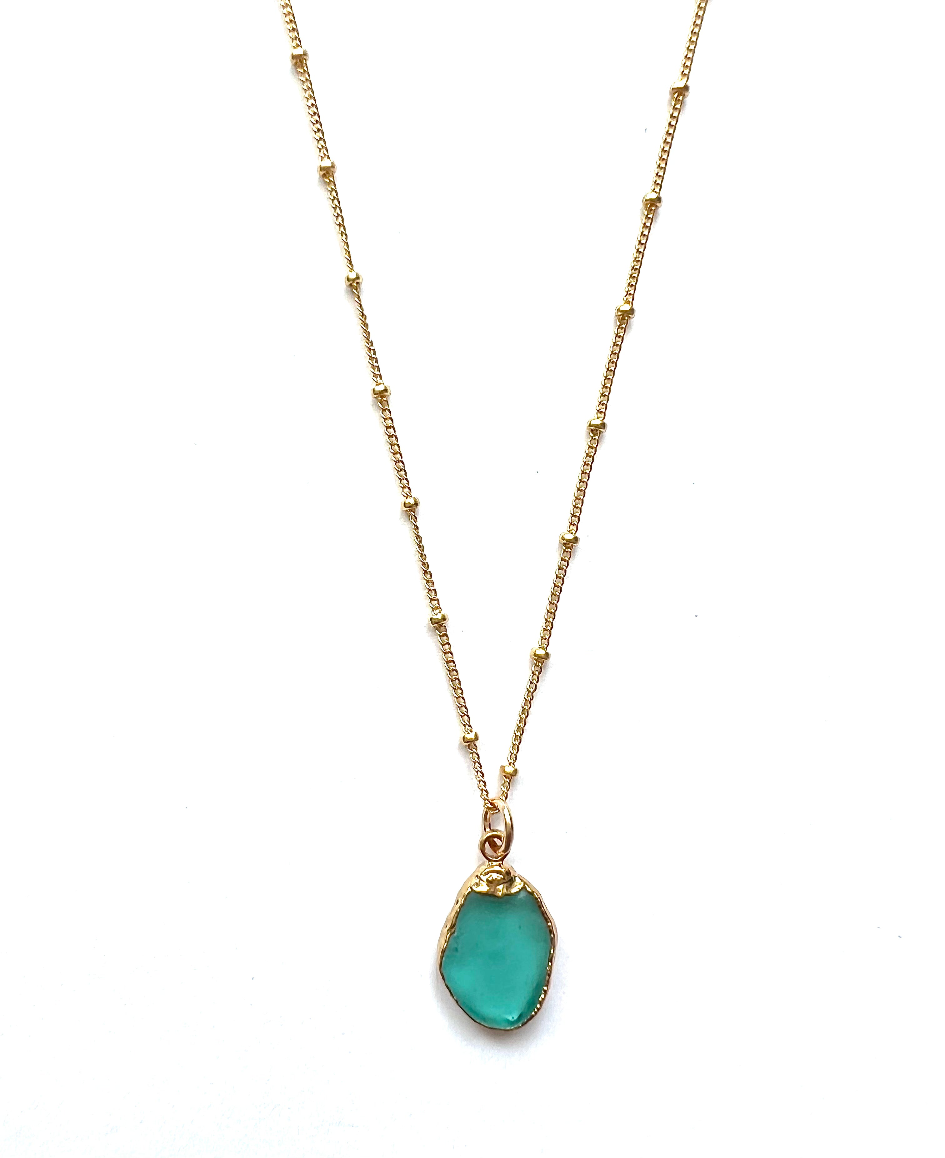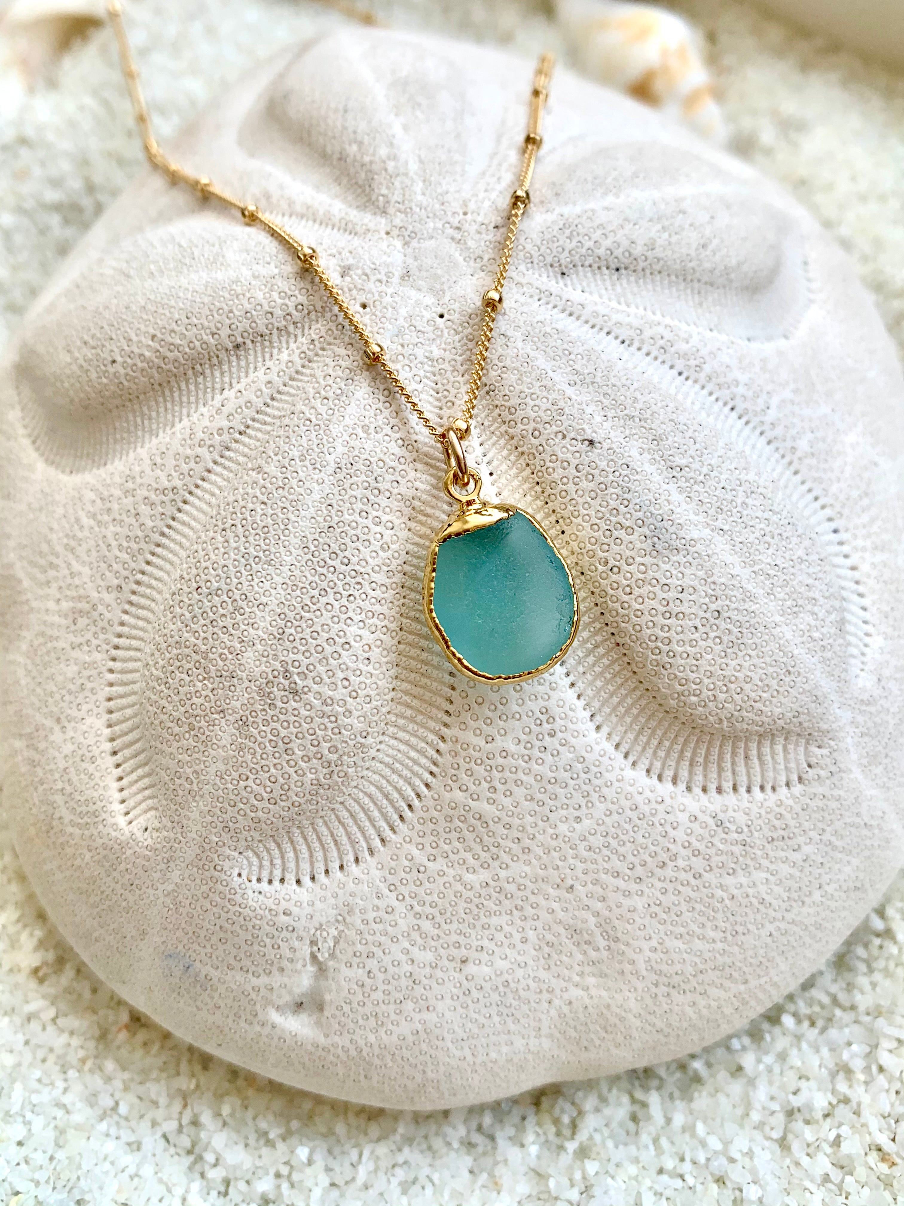 Rare teal color sea glass bringing you the flair of our caribbean ocean colores. Perfect 16inch layer necklace to combine or wear on its own.