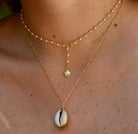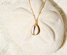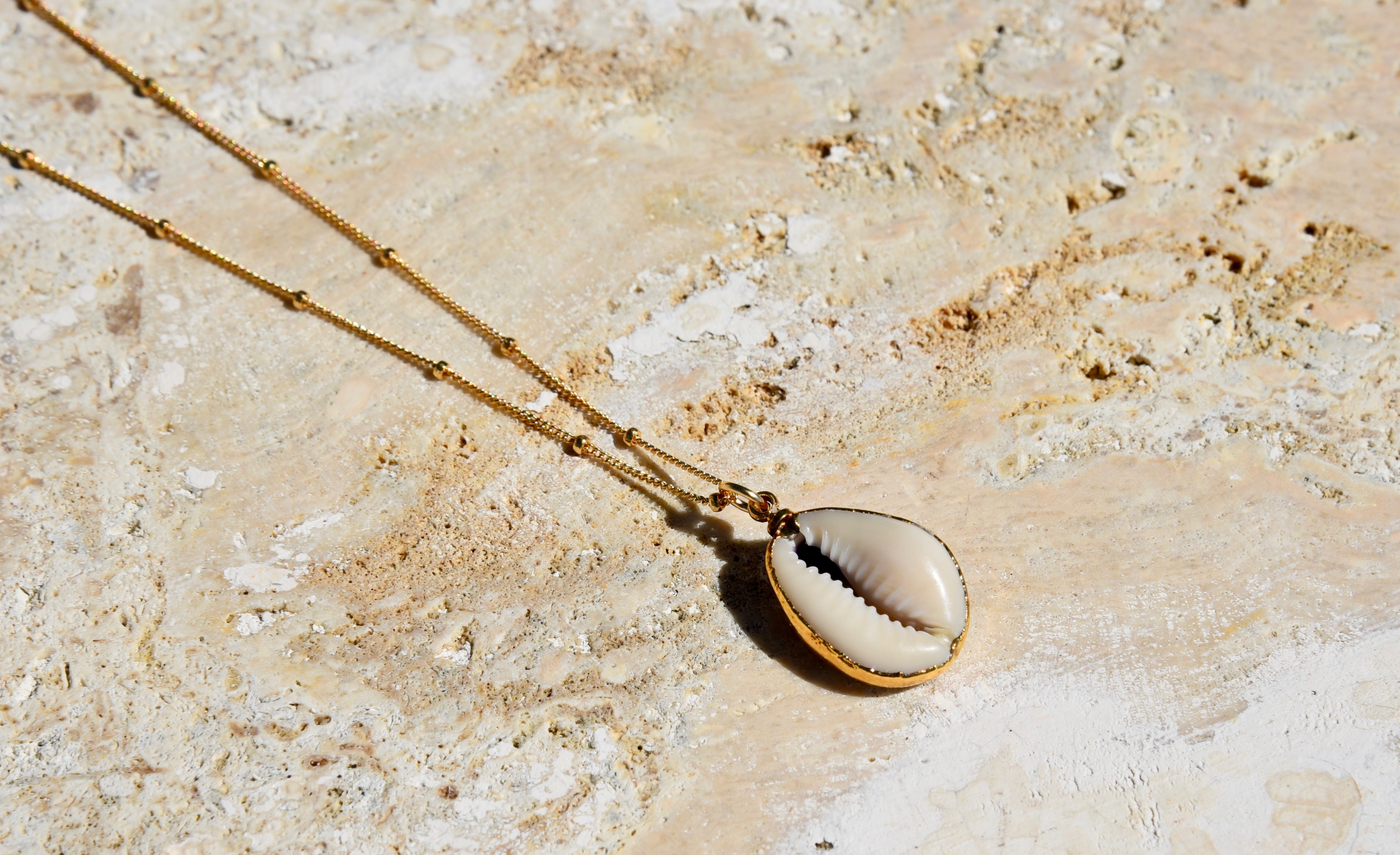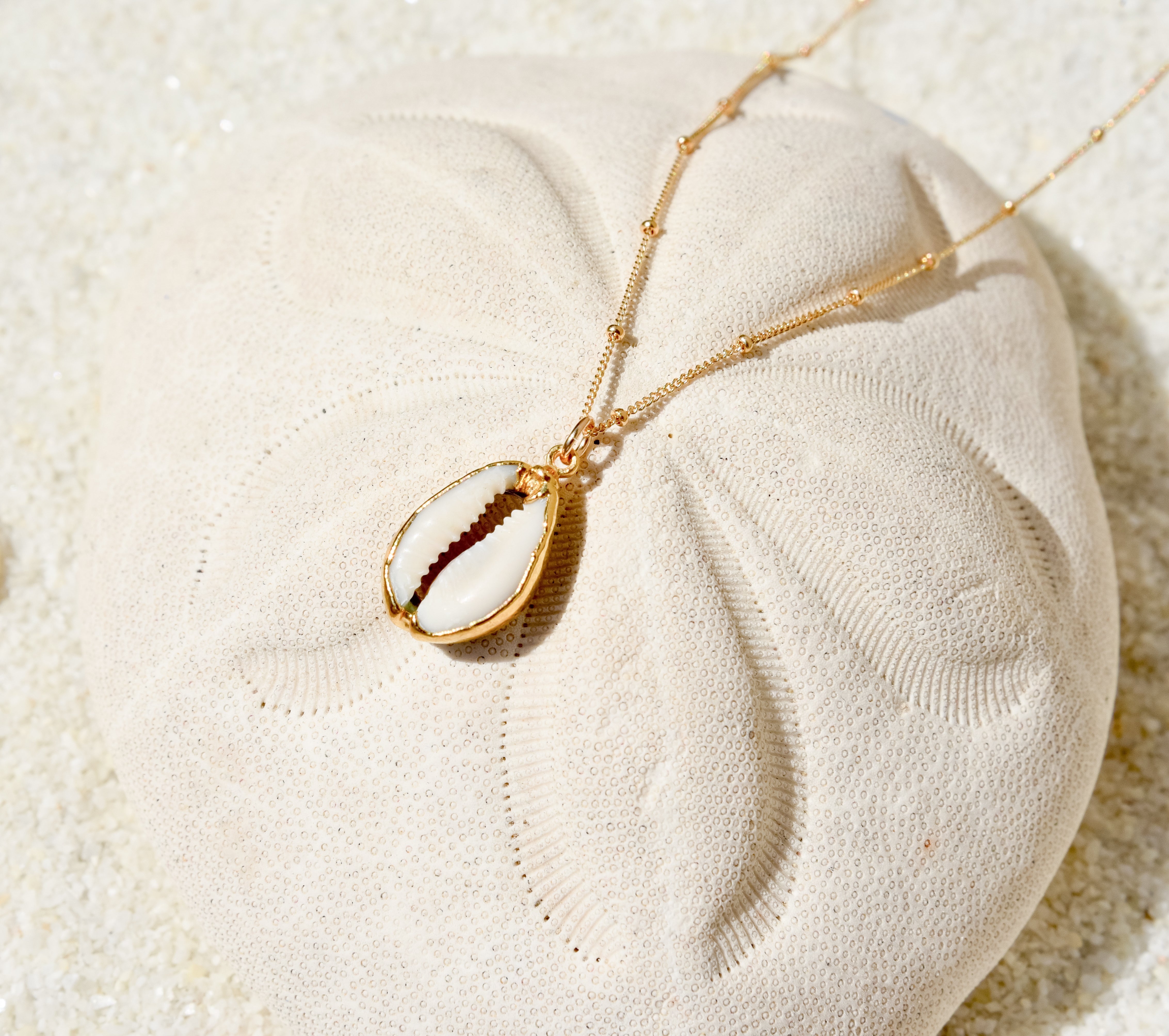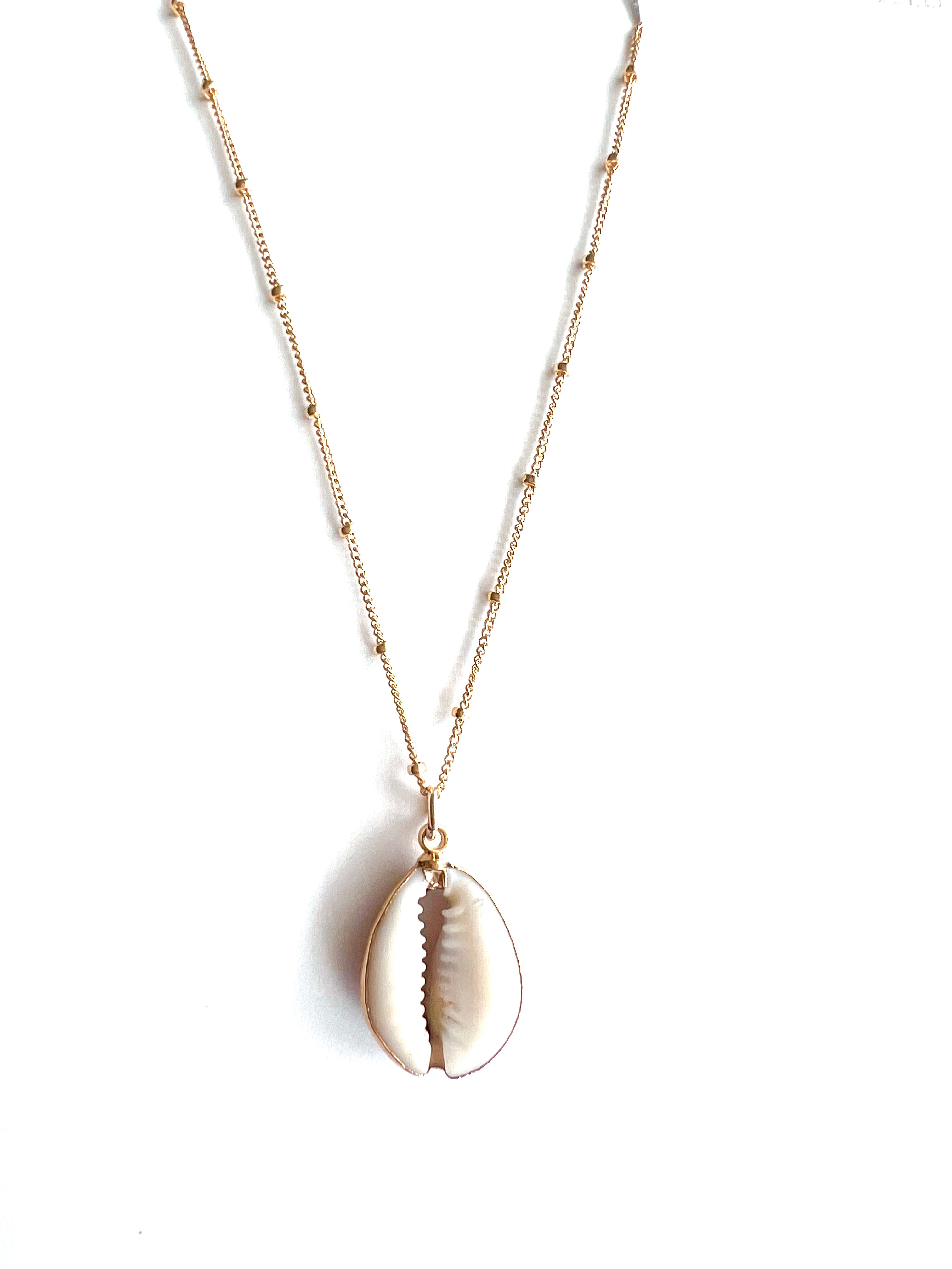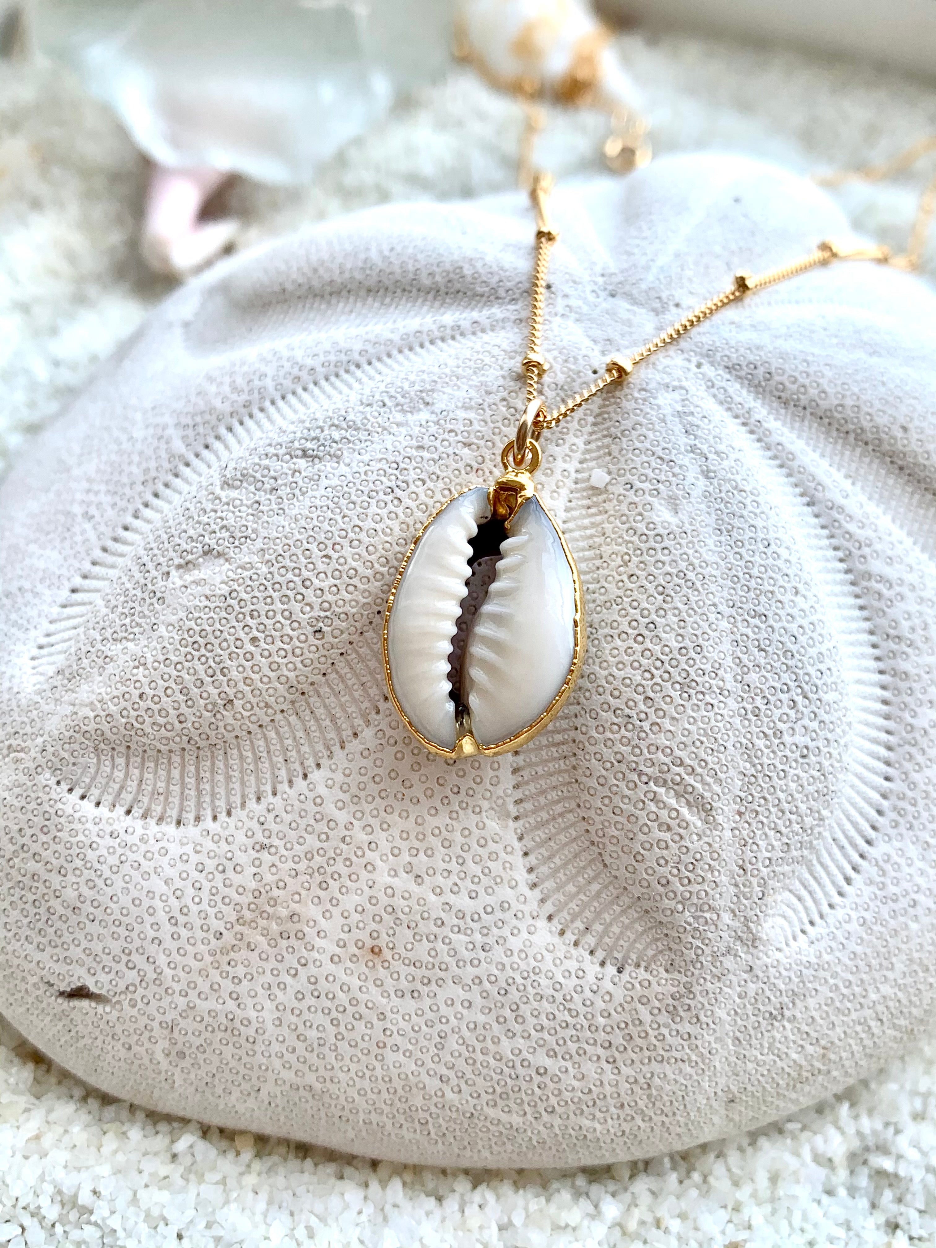 Beautiful White Cowrie Sea Shell with a 18k gold finish or 925 sterling silver finish on the shell. Chain is 14k gold filled 18 inches or 925 Sterling silver 18 inches.