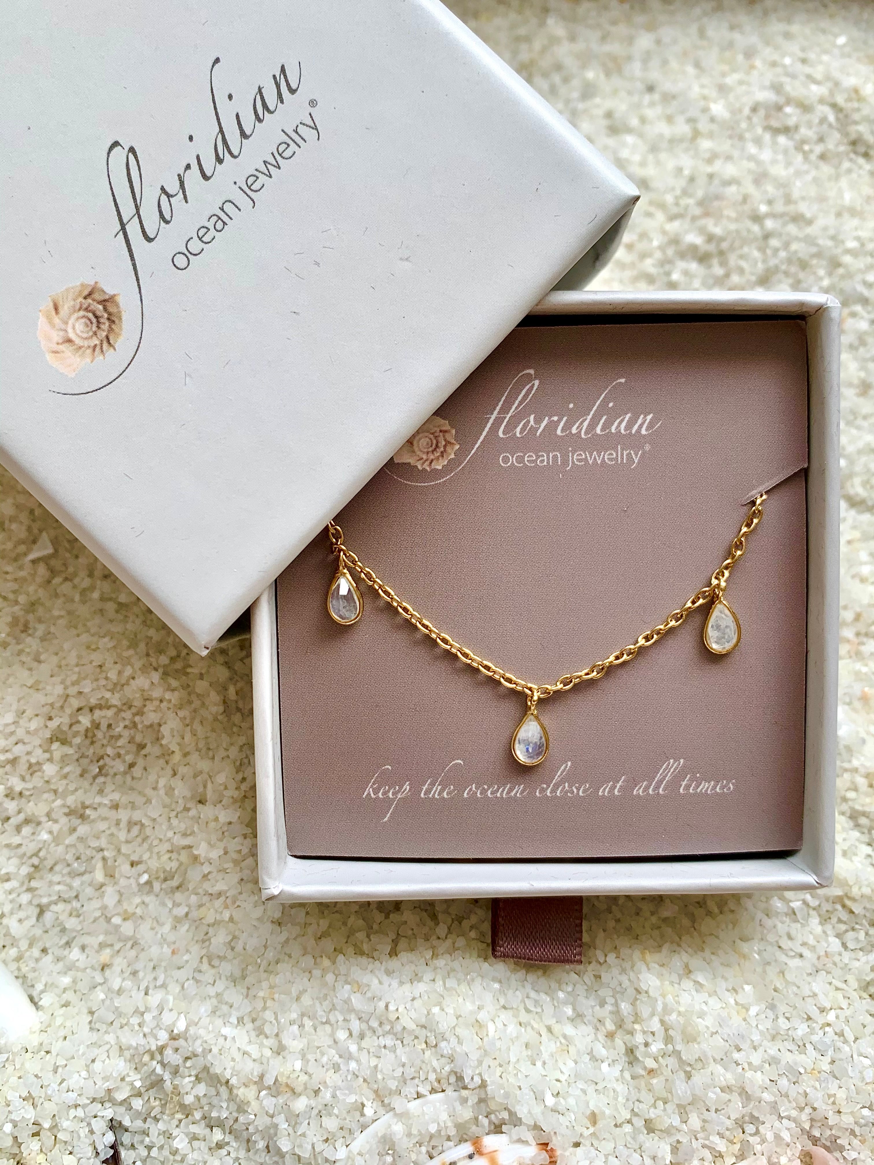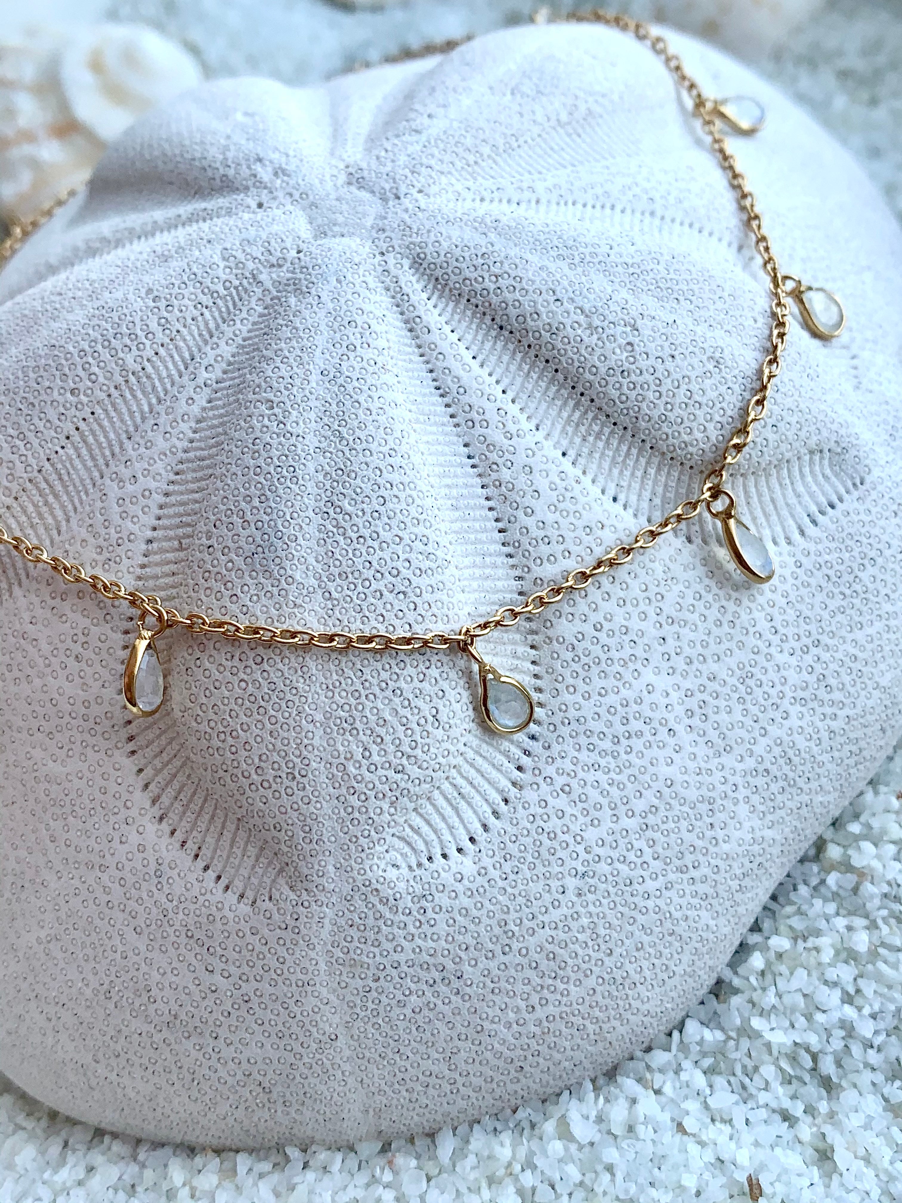 Beautiful dainty teardrop moonstone anklet in 14k gold vermeil
