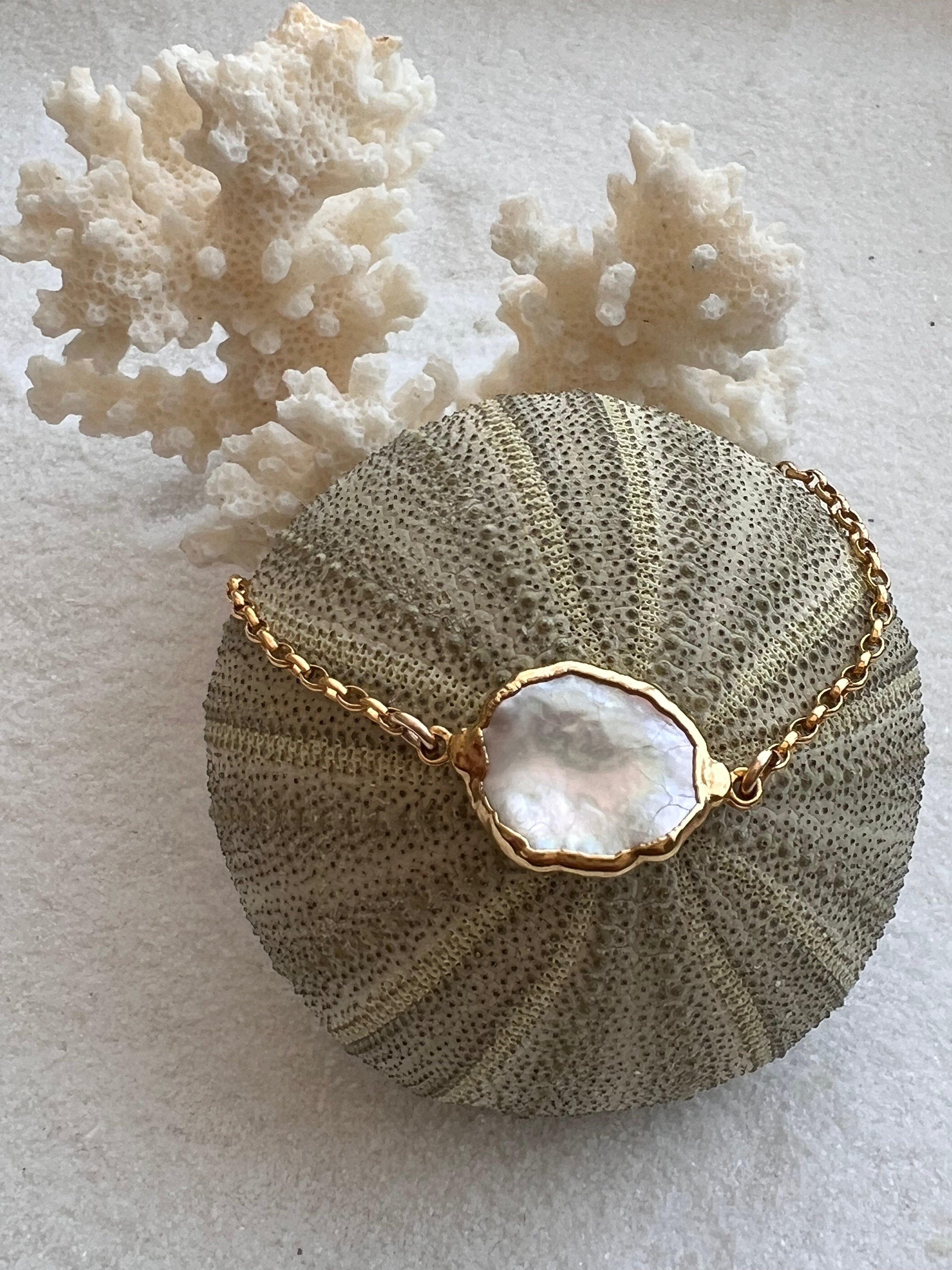 Natural Kesha Pearl with either 18k gold leafed of 925 sterling silver leafed.