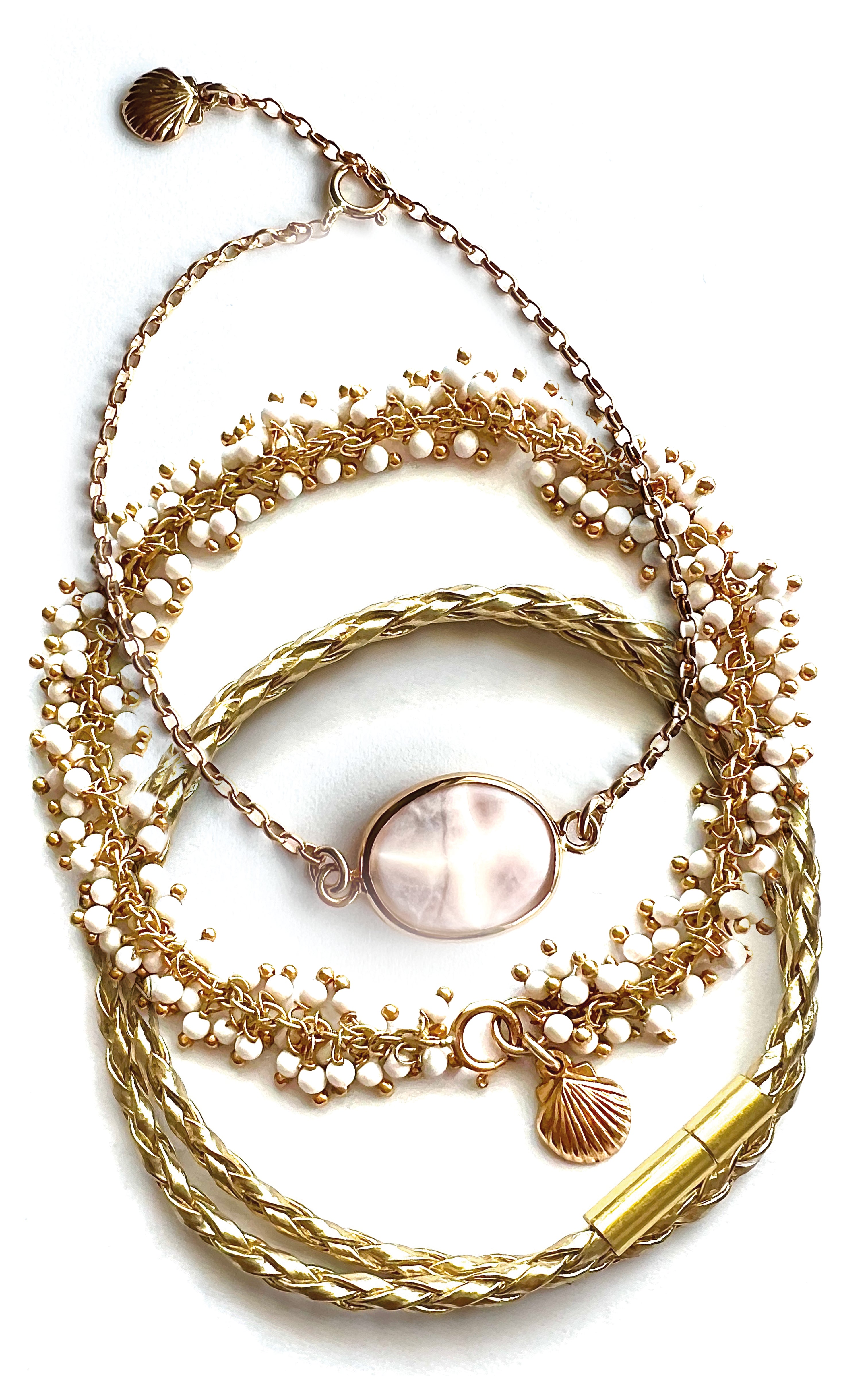 This beautiful pastel colored bracelet set features the rare Pink Natrolite which reflects the beautiful color of natures most gorgeous sunsets. Combined with our white coral bracelet which is a beauty on its own.