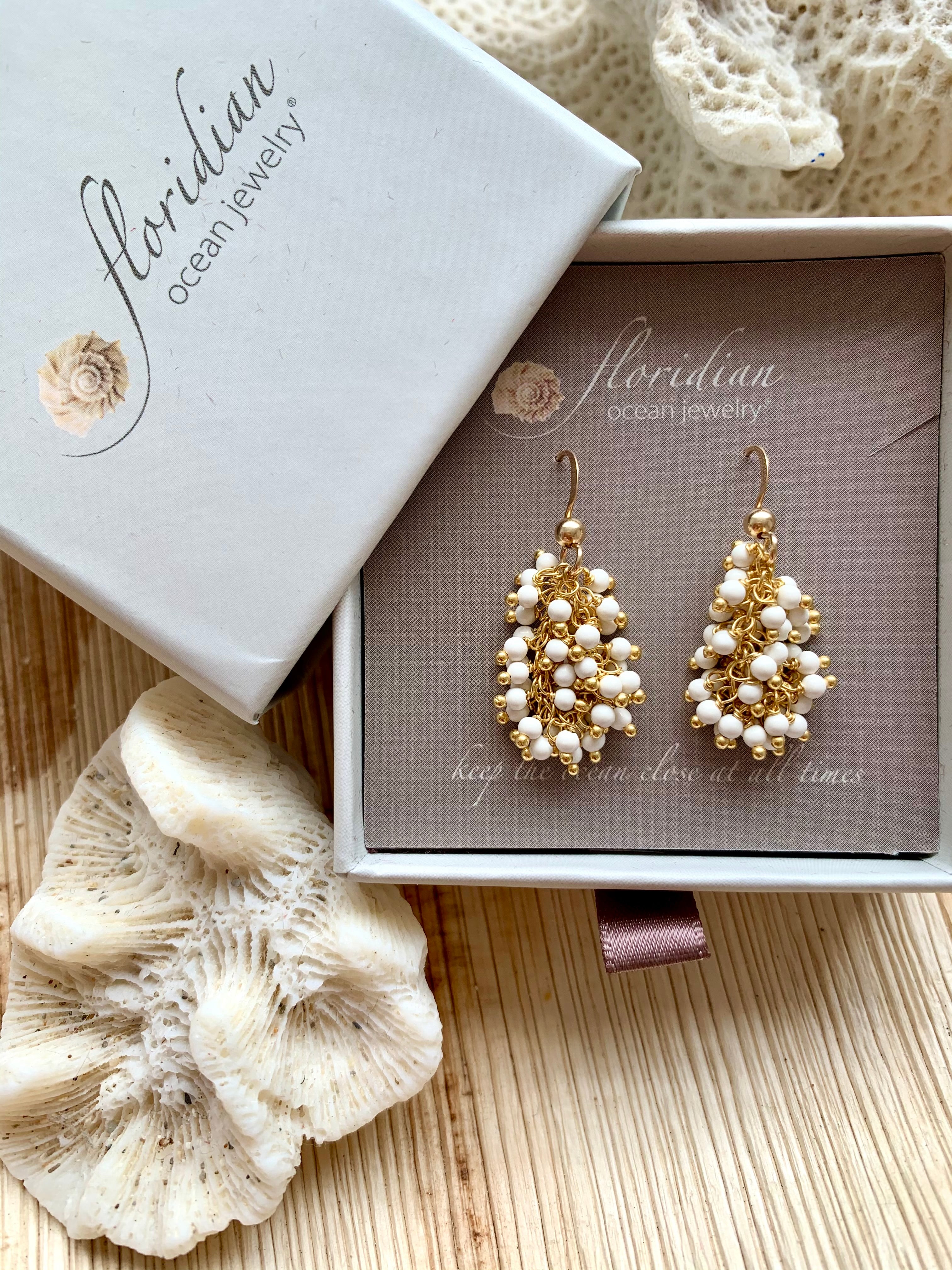 Beautiful White Sea foam colored coral beaded on a 18k gold vermeil wire.